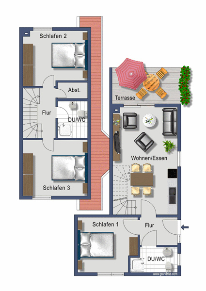 In der Wohnung B sind 3 Schlafzimmer für 6 Pers. plus 3 Beistellbetten, 2 DU/WC, Föhn. Bett- und Handwäsche wird von uns gestellt.